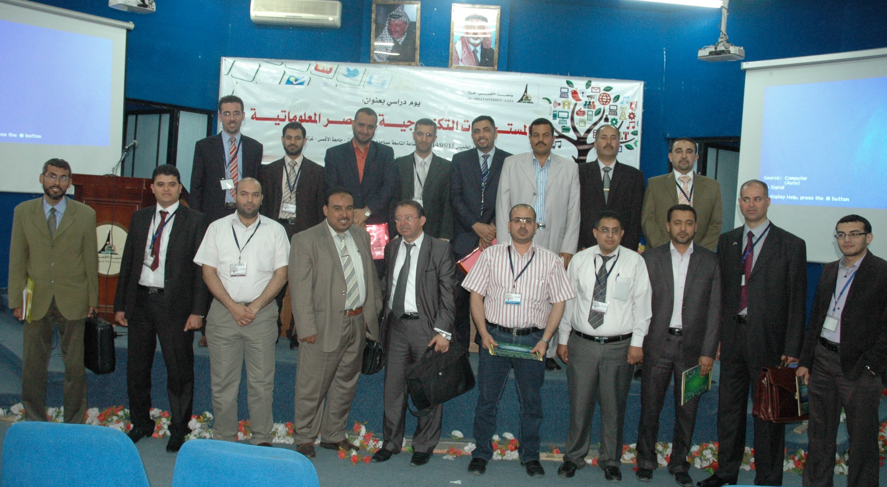 عقد قسم التكنولوجيا والعلوم التطبيقية يوماً دراسياً والموسوم بـ: "المستحدثات التكنولوجية في عصر المعلوماتية", وذلك يوم الخميس الموافق 15/5/2014, حيث حضر هذا اليوم عدد من الأكاديميين والباحثين من مختلف جامعات قطاع غزة.