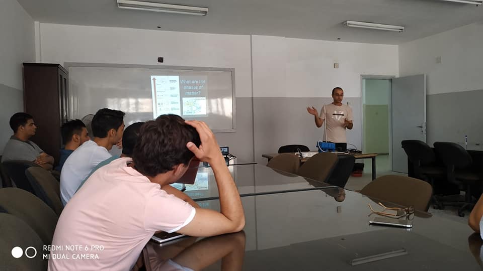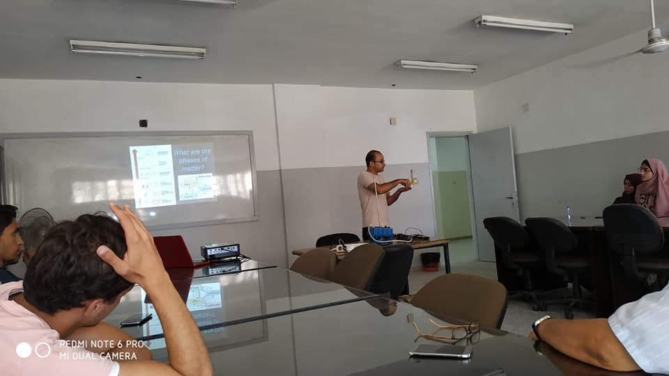 حيث عرض خلال المحاضرات السابقة تركيب التلسكوب و كيفية عمله وكذلك مثال حي للبلازما الحارقة وأتيح لبعض الأصدقاء تجربة الأجهزة