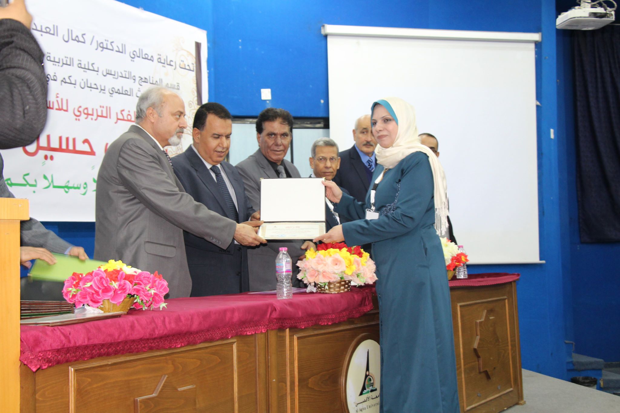 نظم قسم المناهج وطرق التدريس بكلية التربية بالتعاون مع عمادة الدراسات العليا والبحث العلمي بالجامعة يوماً دراسياً بعنوان : " الفكر التربوي للأستاذ الدكتور يعقوب حسين نشوان " وذلك برعاية معالي رئيس الجامعة د . كمال العبد الشرافي بحضور أ. د. أيمن صبح نائب رئيس الجامعة للشئون الأكاديمية وأ. د. محمود الأستاذ رئيس قسم المناهج و التدريس ، وأ. د. تيسير نشوان عميد كلية مجتمع الأقصى والدراسات المتوسطة و أ. د. عبد الله عبد المنعم وكيل وزارة التربية والتعليم سابقاً ، ود. ابراهيم المشهراوي من جامعة القدس المفتوحة ، و السادة أعضاء مجلس الجامعة وعدد من المهتمين والمختصين من الجامعات ووكالة الغوث ووزارة التربية والتعليم .