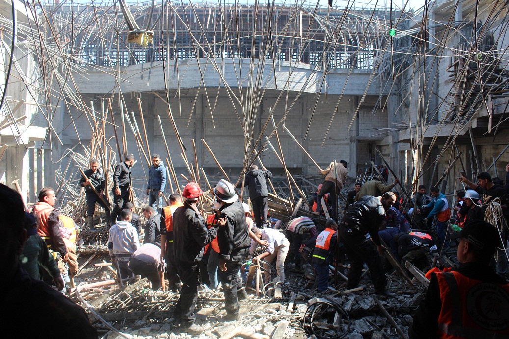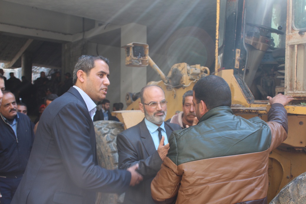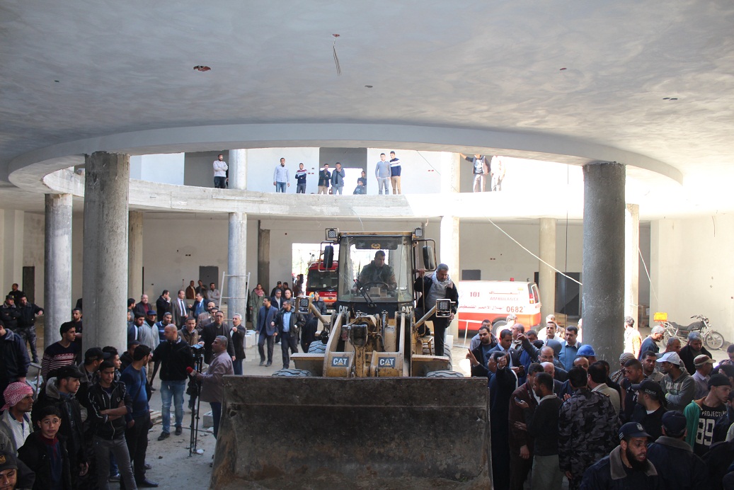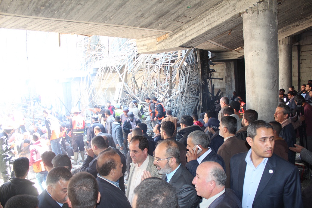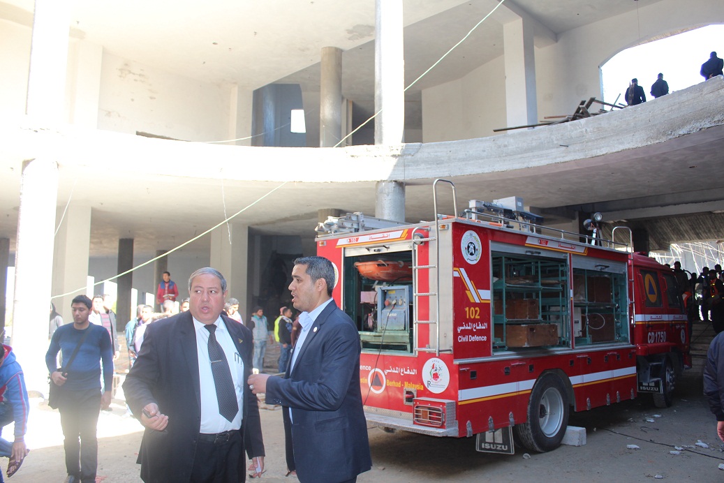 جهود مبدولة من قبل إدارة الجامعة والموظفين ورجال الدفاع المبدني لازالة ركام المبنى