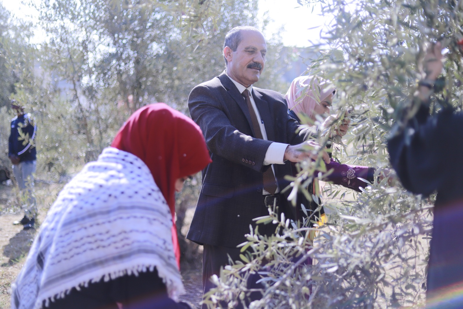 ">جامعة الأقصى تنظم يوم عمل تطوعي لمساندة المزارع الفلسطيني بجني ثمار الزيتون " العونة"