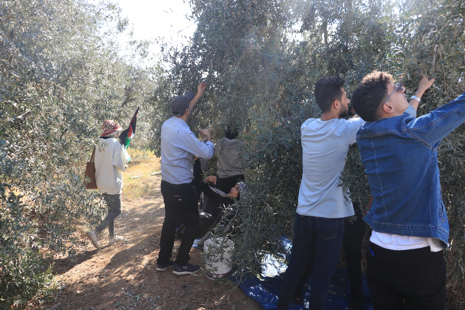 جامعة الأقصى تنظم يوم عمل تطوعي لمساندة المزارع الفلسطيني بجني ثمار الزيتون " العونة"
