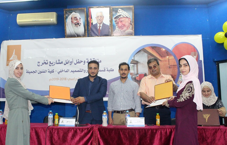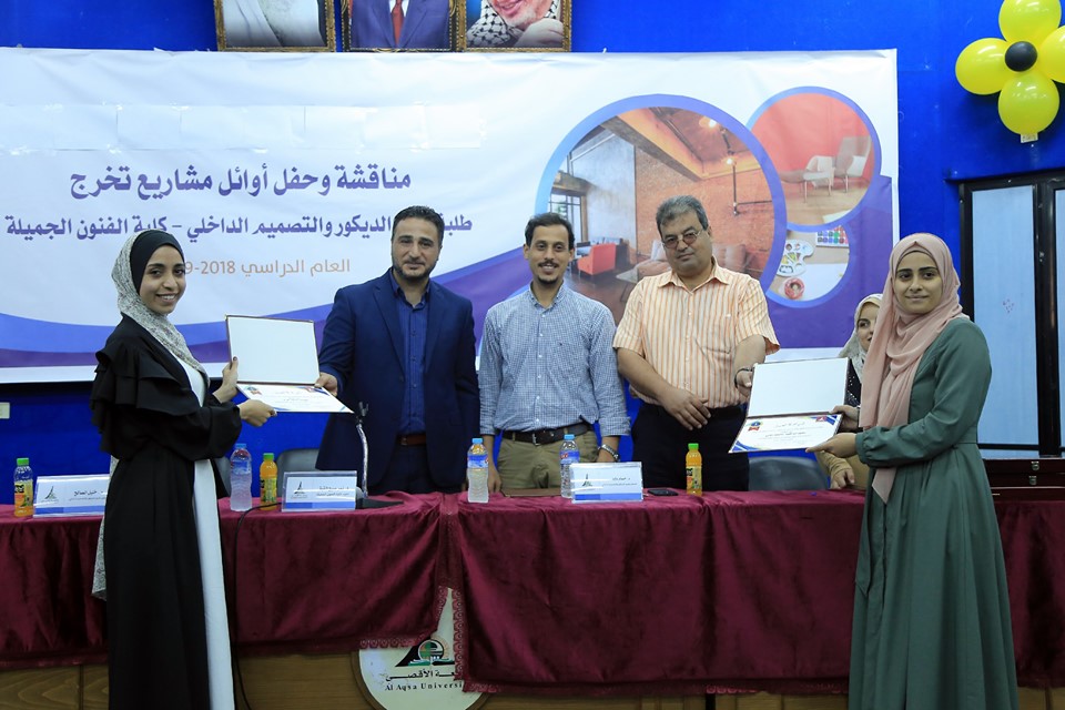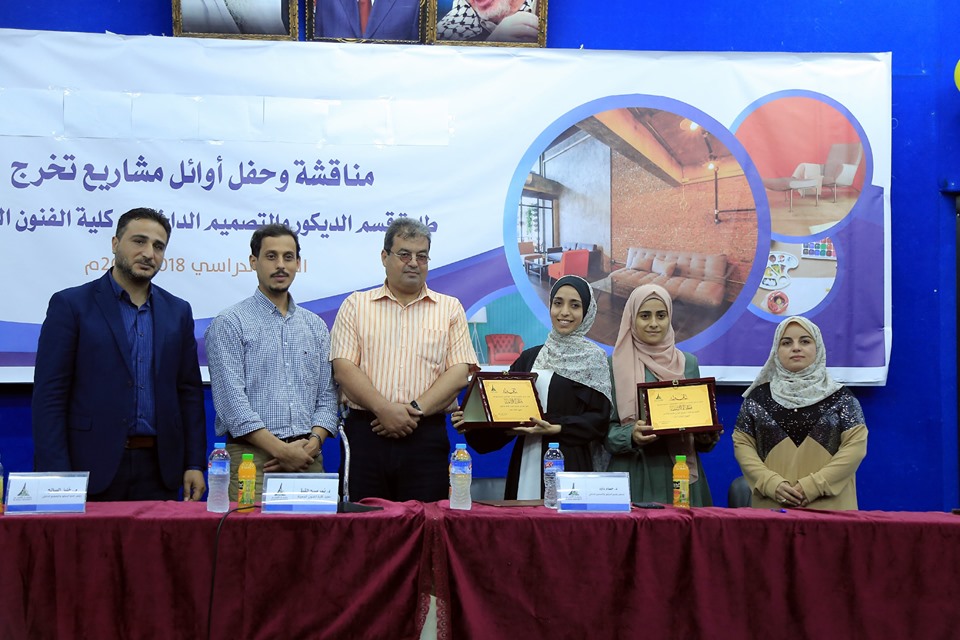 نظمت كلية الفنون الجميلة – قسم الديكور والتصميم الداخلي حفل التميز لأوائل مشاريع التخرج لطلبة القسم وذلك بحضور كل من عميد كلية الفنون الجميلة د. نمر القيق ورئيس قسم الديكور والتصميم الداخلي م. خليل الصالح ولفيف من أعضاء الهيئة التدريسية بالقسم وعدد من الطلبة الخريجين وذويهم.