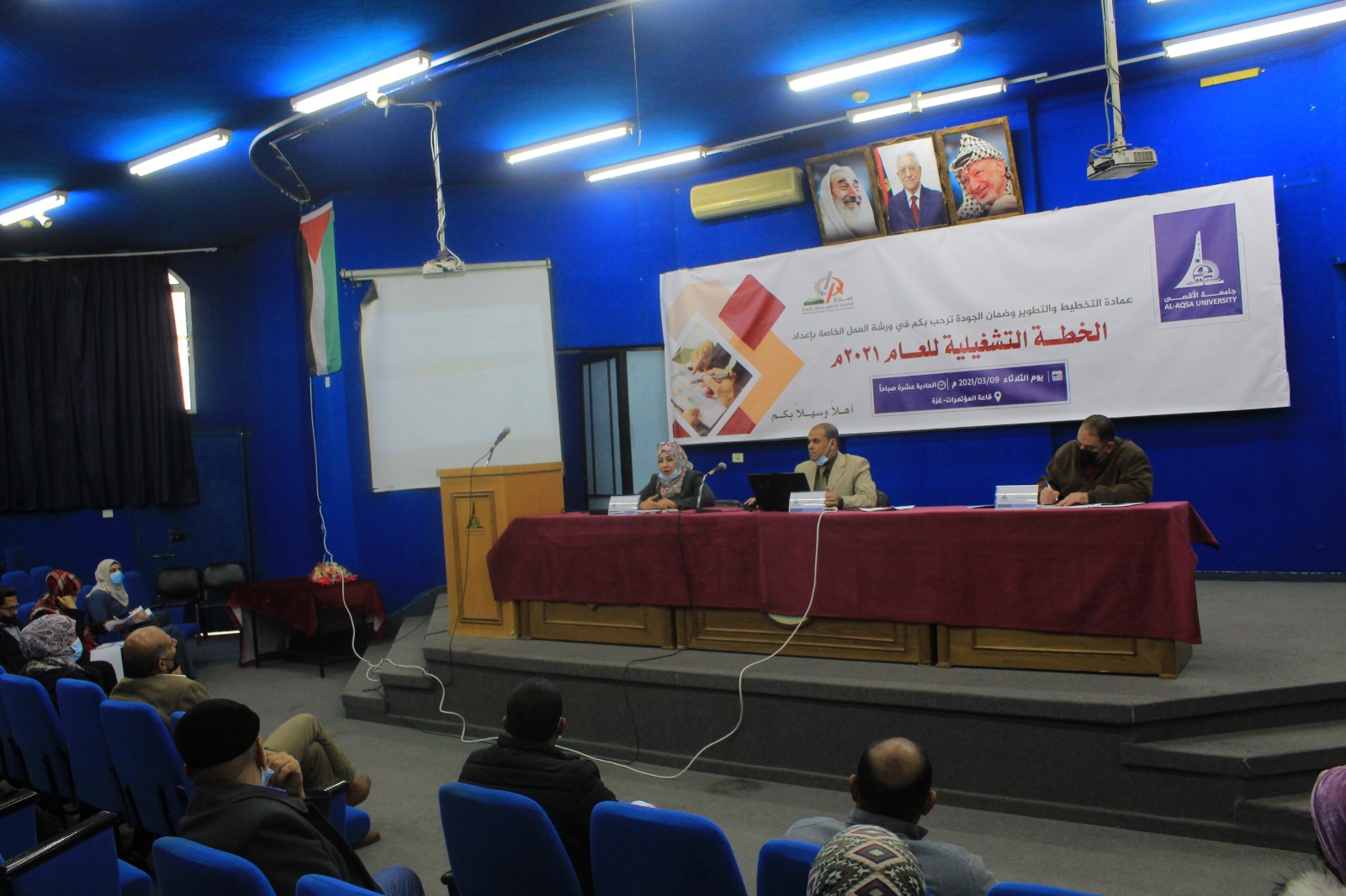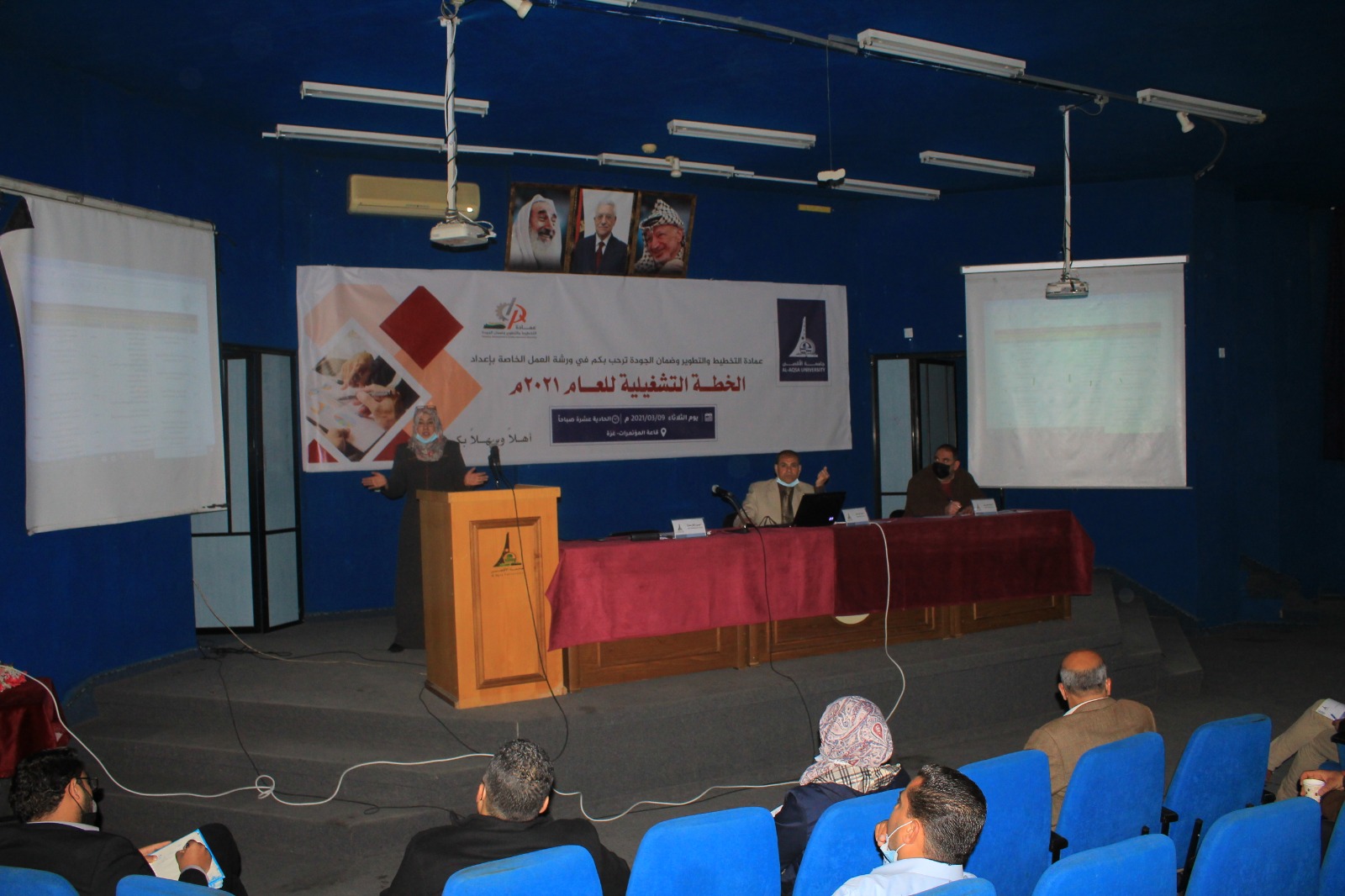 عقدت عمادة التخطيط والتطوير وضمان الجودة ورشة عمل خاصة بإعداد الخطة التشغيلية للعام 2021م ، وذلك في إطار خطة عمل العمادة لإعداد الخطط التشغيلية لجميع مكونات الجامعة، بهدف تحقيق الغايات والأهداف الاستراتيجية للجامعة، حيث افتتح الورشة د. منير أحمد سمور مدير دائرة التخطيط والتطوير بالترحيب بالحضور، موضحاً أهداف عقد هذه الورشة وأهمية التخطيط الاستراتيجي، كما تقدم د. سمور بالشكر والتقدير للدكتور/ عمر عبد الحي مقداد عميد التخطيط والتطوير وضمان الجودة على جهوده الدؤوبة في تذليل العقبات لتحقيق غايات وأهداف الجامعة الاستراتيجية.