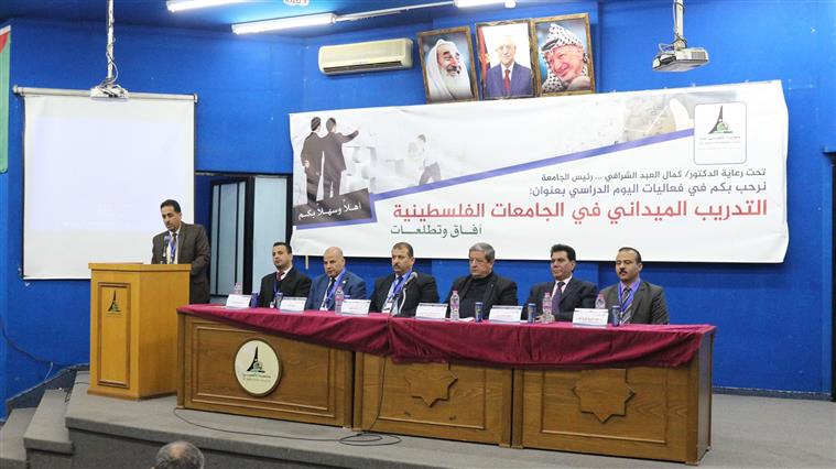 نظمت كلية مجتمع الأقصى بالتعاون مع كلية التربية بجامعة الأقصى يوماً دراسياً بعنوان: "التدريب الميداني في الجامعات الفلسطينية_ آفاق وتطلعات" وذلك بحضور معالي د. كمال العبد الشرافي رئيس الجامعة و د. تيسير نشوان عميد كلية مجتمع الأقصى للدراسات المتوسطة ، و أ. د. خالد السر عميد كلية التربية والسادة نواب ومستشاري رئيس الجامعة وعدد كبير من الهيئتين الأكاديمية والإدارية في الجامعة وحشد من المهتمين والمختصين وطلبة الجامعة .