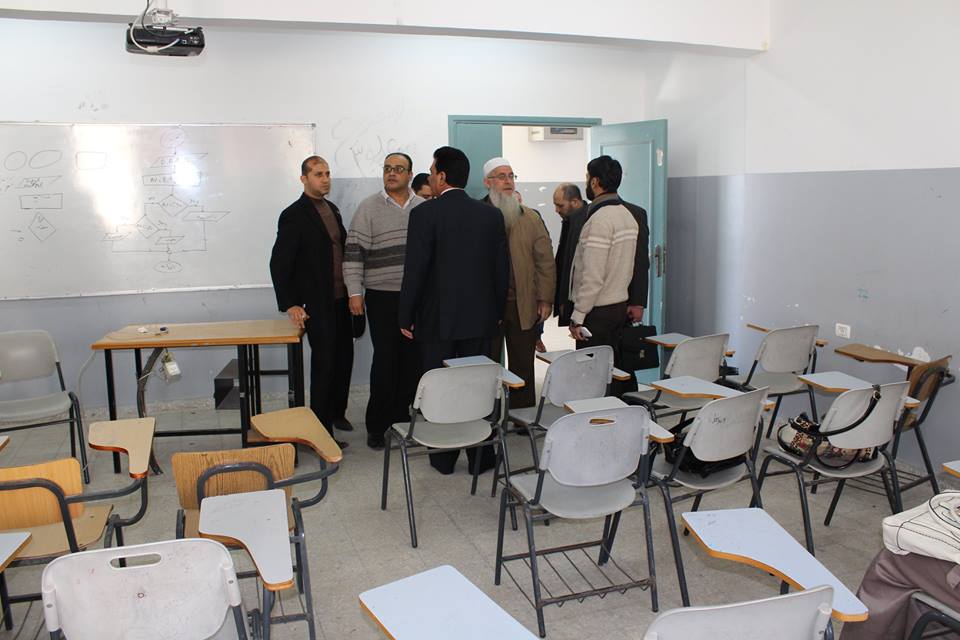 وقام د. الناعوق بعمل جولة واسعة لمباني الكلية، والمكاتب الإدارية، والقاعات الدراسية، وبدوره أكد على أن هذه الزيارة تهدف إلى الاطلاع على حاجات الكلية الأساسية، والعمل قدر المستطاع على تلبيتها بما يحقق أهداف الكلية، مشيراً في الوقت ذاته إلى سعي الشئون الإدارية والمالية الحثيث لتذليل كافة الصعوبات أمام العاملين في الكلية، منوهاً إلى أنهم – في الشئون الإدارية والمالية- سيكون تكملة مبنى فرع الكلية بغزة في سلم أولوياته