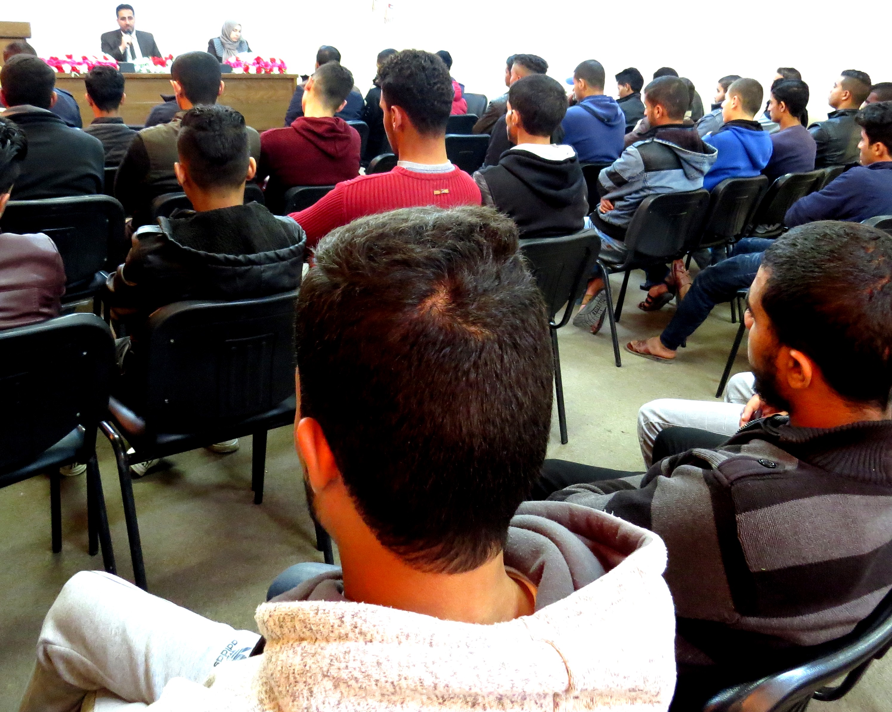 من جانبه رحب د. الأشقر بالحضور، شاكراً إدارة الكلية ممثلة في عميدها د. نشوان لجهودها المتواصلة للنهوض بالكلية وطواقمها وطلبتها، لافتاً إلى أن هذا اللقاء جاء للتواصل مع الطلبة وتزويدهم ببعض التوجيهات التي يجب عليهم معرفتها للبدء في مشوار التدريب الميداني، والذي سيكون مسؤولاً عن تأهيلهم لخوض غمار سوق العمل كلٌ في تخصصه ومجاله، مشيراً إلى ضرورة الالتزام بتوجيهات القسم والمشرف الميداني والعمل على إعطاء الصورة المثالية للمؤسسة المستضيفة الطالب المتدرب عن الكلية من خلال التزامه ونسج العلاقات الجيدة مع إدارة المؤسسة وجمهورها الداخلي والالتزام بأنظمتها وقوانينها.